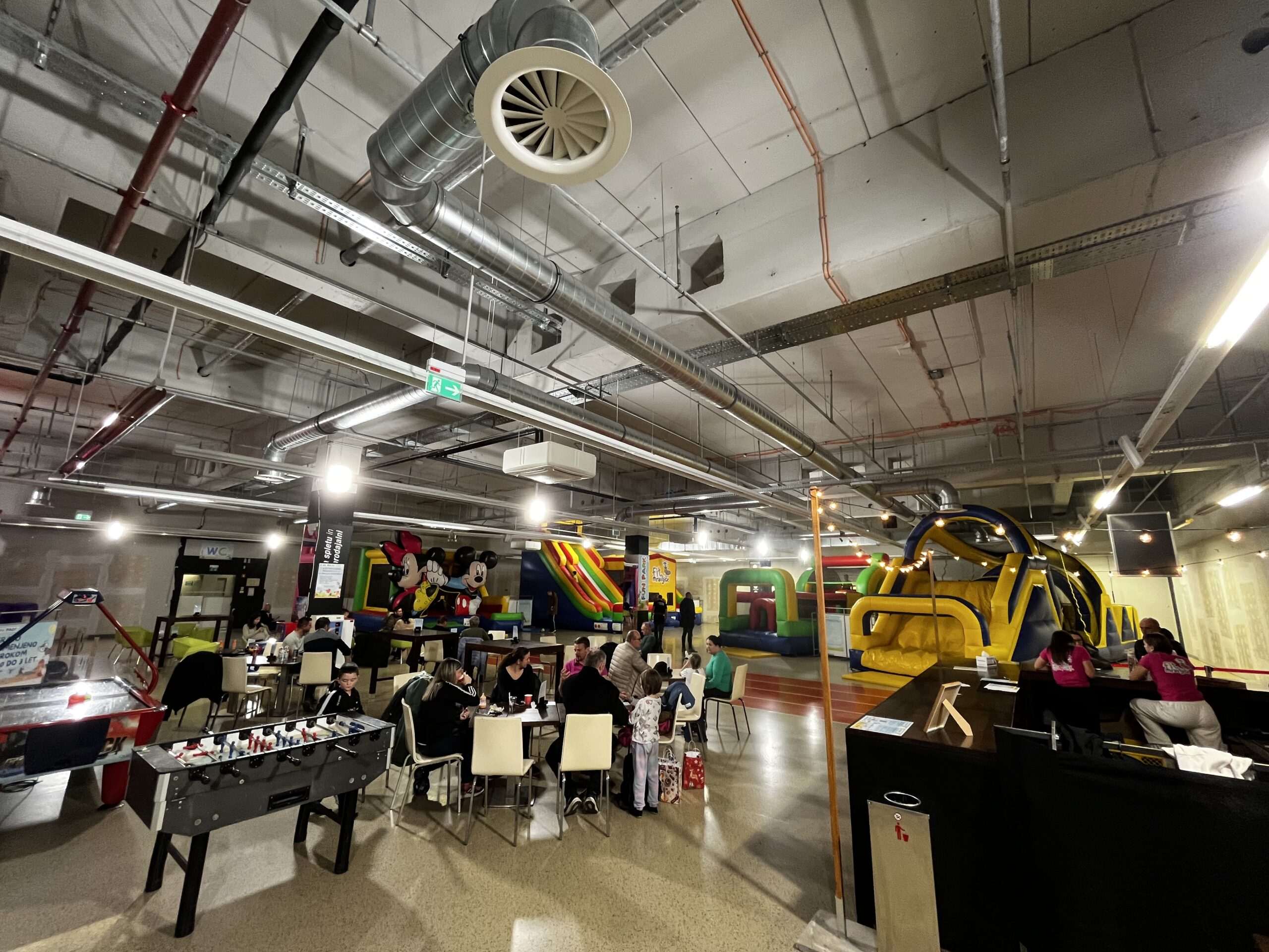 - športni program (elementarne igre, športne igre v ločeni za to pripravljeni “dvorani”),